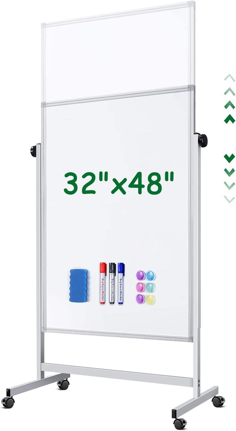 Mobile Whiteboard 32x48 Inches Height Adjustable - Double-Sided Magnetic Dry Erase Board with Stand & Wheels, Portable Rolling Whiteboard for Office Home Classroom